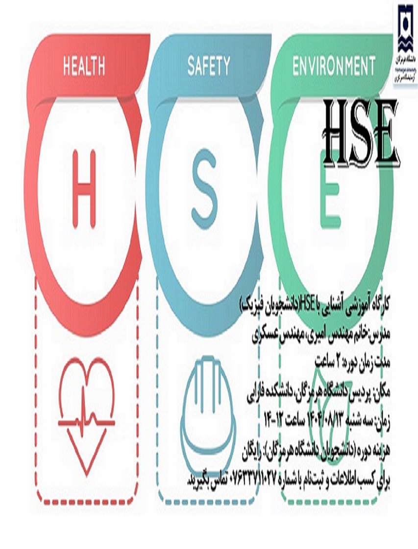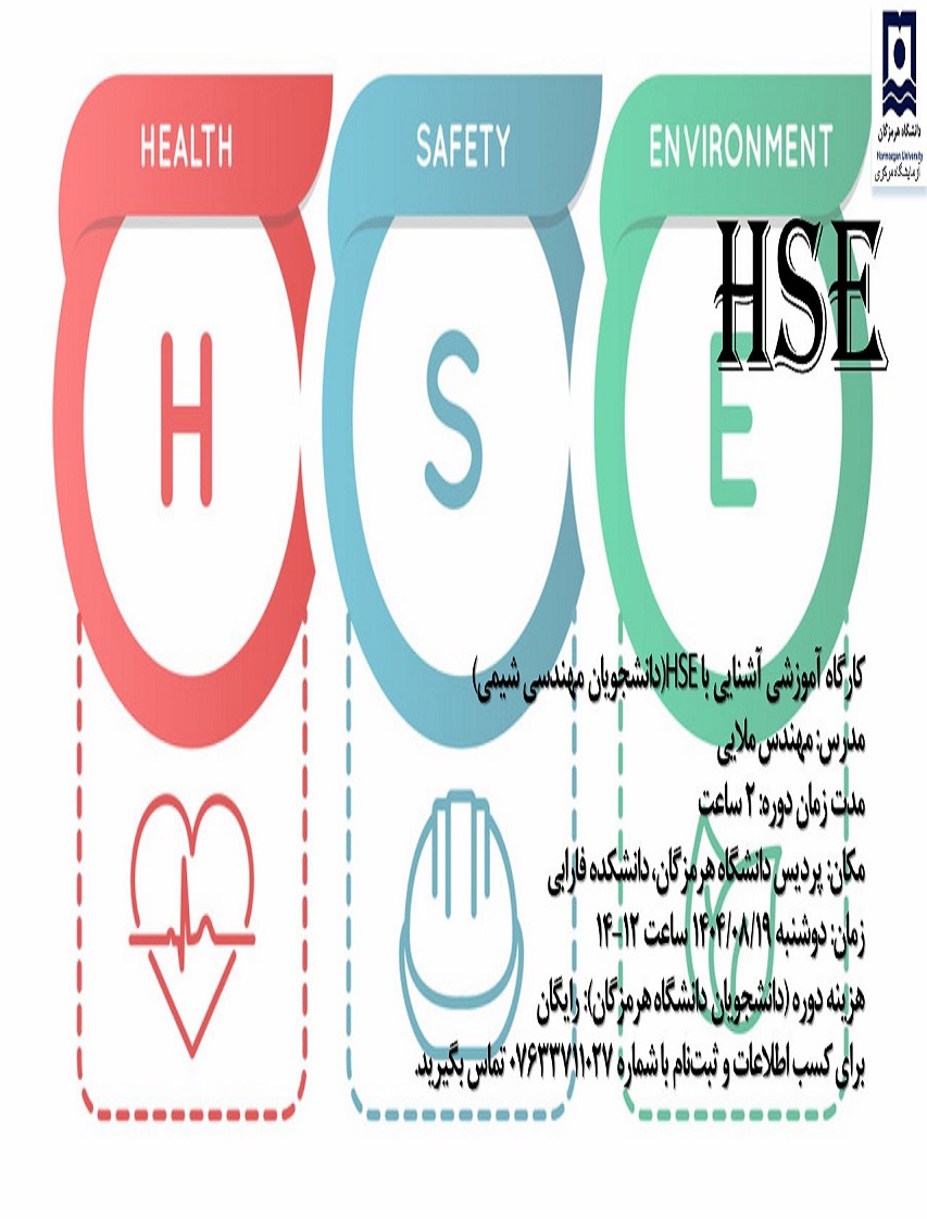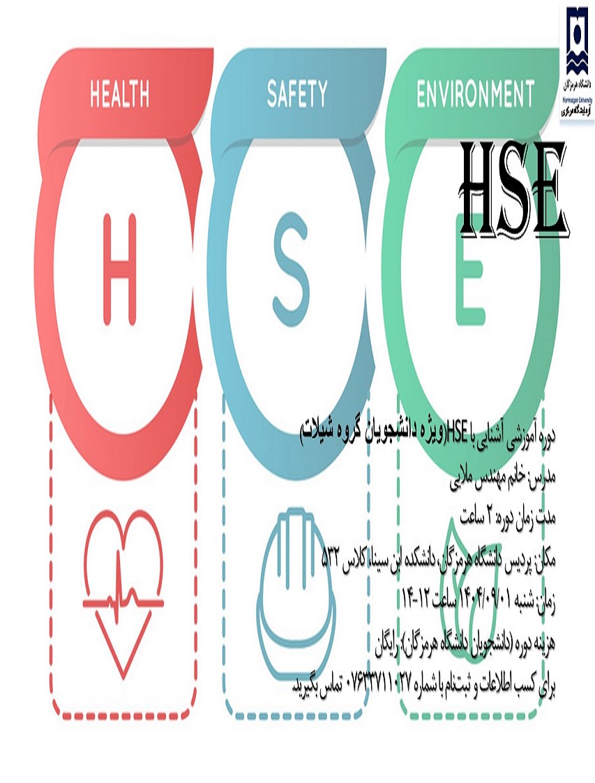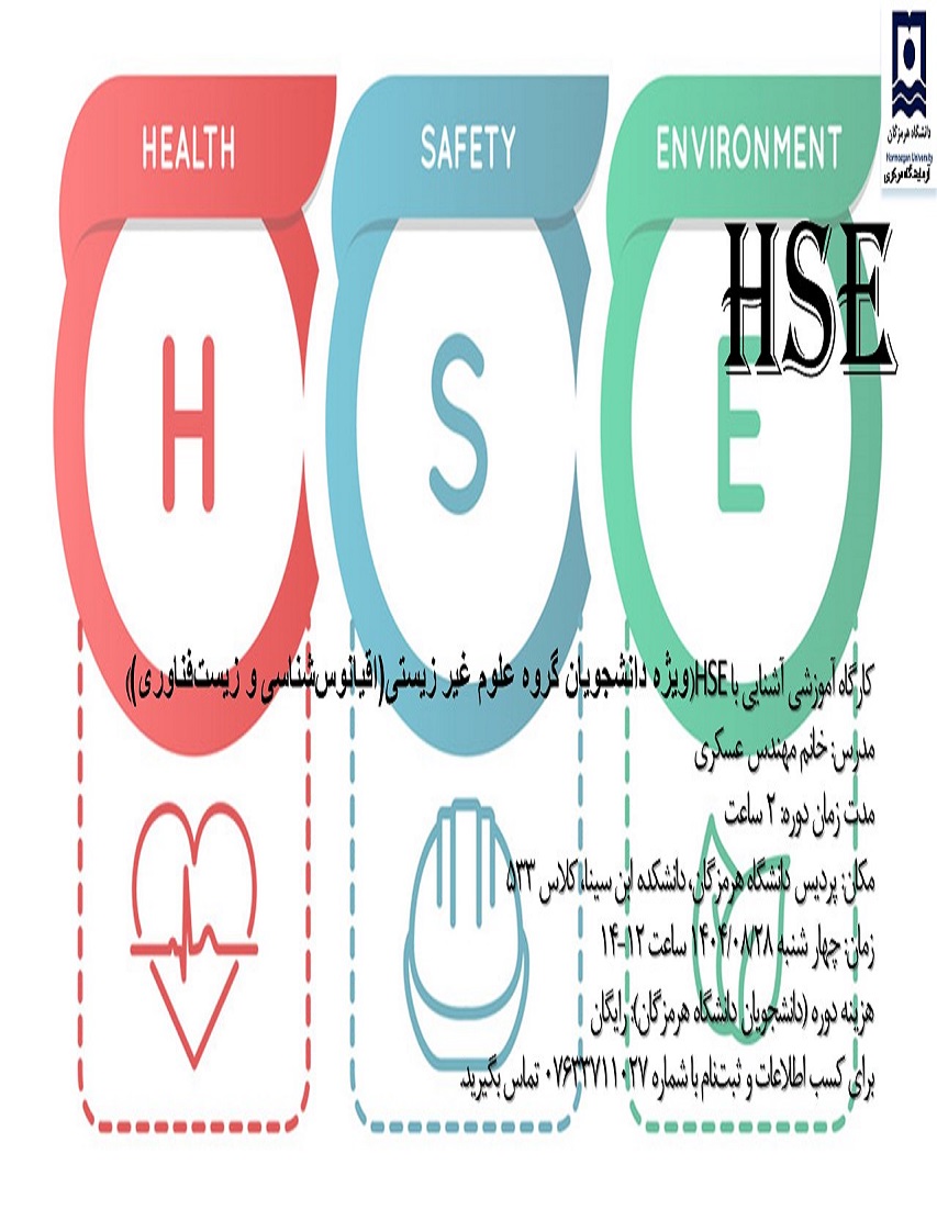 - دوره آموزشی آشنایی با HSE(ویژه دانشجویان گروه علوم غیر زیستی(اقیانوسشناسی و زیستفناوری))