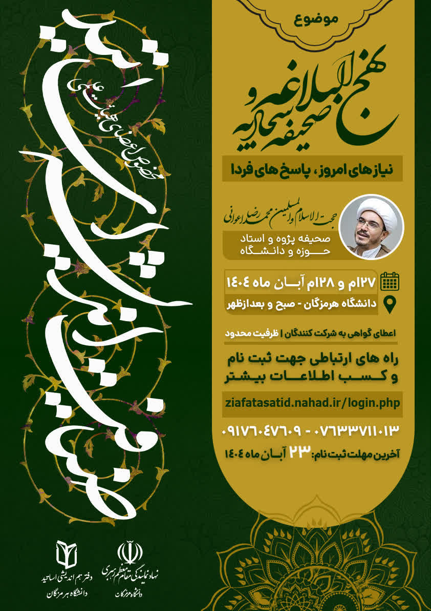 ضیافت‌ اندیشه‌ اساتید‌ «نهج‌ البلاغه‌ و‌ صحیفه‌ سجادیه‌،‌‌ نیازهای امروز‌، پاسخ‌های‌فردا»