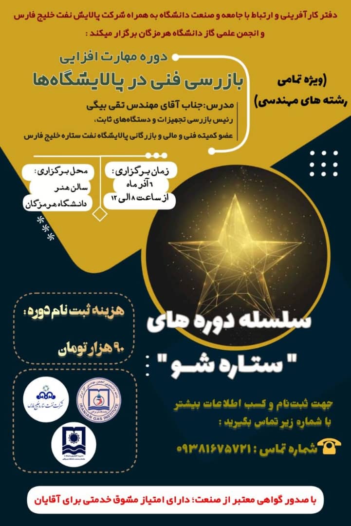 برگزاری کارگاه مهارت افزائی با عنوان " آشنایی با تجهیزات صنعتی و پالایشگاهی"
